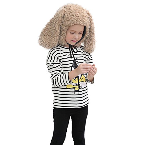 POTOJP 可愛い兎耳付き フェイクファー キッズ帽 動物ちゃん 赤ちゃん帽子 ふわふわ 女の子 男の子 秋冬 コスチューム 変装 ハット 防寒防風対策 クリスマス (KH)