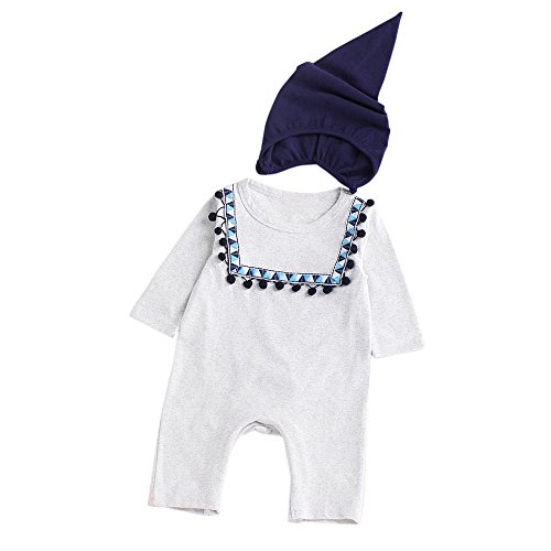 POTOJP女の子 キッズ ベビー服 民族風 ベビースーツ ボディスーツ カバーオール ジャンプスーツ 長袖 連体服 ロンパース 春秋冬 普段着 カジュアル 帽子 2点セット (80, ホワイト)