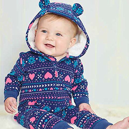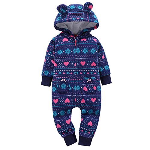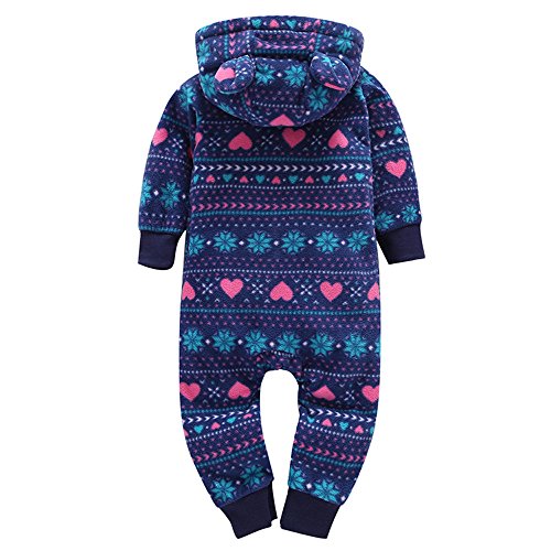 POTOJP 着ぐるみ キッズ ベビー カバーオール ジッパー ロンパース フード付き 長袖 防寒着 暖かい 連体服 普段着 カジュアル (75, ブルーハート)