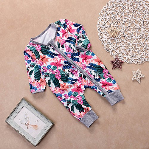 POTOJP 可愛い ベビー カバーオール 長袖 新生児服 ロンパース プリント ジッパー 女の子 春秋冬 ロンパース(0~24ヶ月) (80)