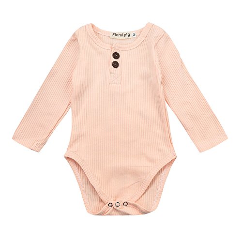 POTOJP 無地 カバーオール 男の子 女の子 冬 新生児 秋冬 長袖 ベビー服 赤ちゃん 肌着 ロンパース コットン ブレンド製 満月/出産祝い/普段着 (80, ピンク)