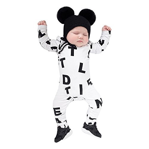 POTOJP 可愛い ベビー カバーオール 男女兼用 長袖 新生児服 ロンパース 英字プリント 春秋冬 満月/出産祝い/普段着 (0~18ヶ月) (80, ホワイト)