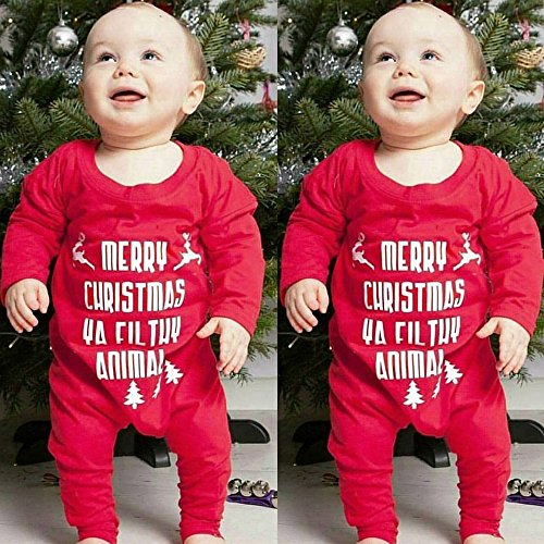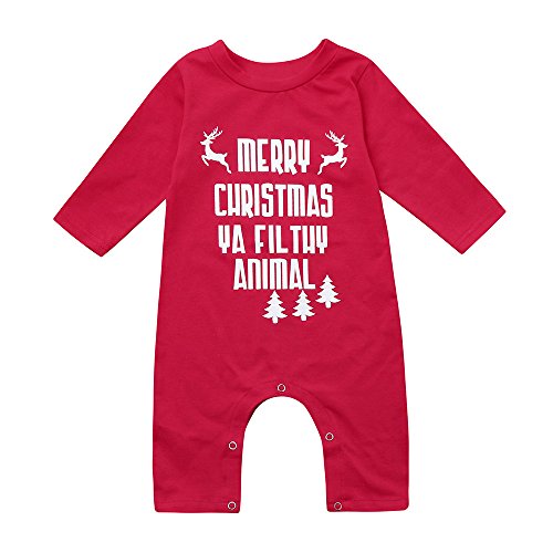 POTOJP クリスマス 英字柄 カバーオール 男の子 女の子 冬 新生児 秋冬 長袖 ベビー服 赤ちゃん ロンパース コットン ブレンド製 満月/出産祝い/普段着 レッド (70, 無地)
