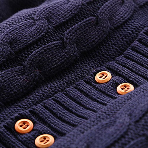 POTOJP ベビー 赤ちゃん ニット カバーオール ロンパース 長袖 無地 ベビー服 キッズ服 あたたか もこもこ 裏起毛 クライミング服 満月/出産祝い/プレゼント 春秋冬防寒着 子供服 (ダークブルー, 80)