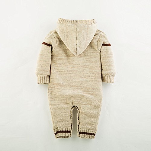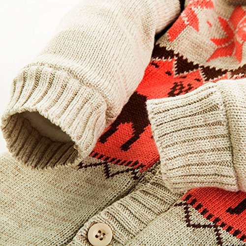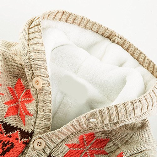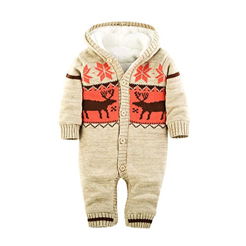 POTOJP ベビー服 あったか クリスマスエルク柄 ニット ロンパース 赤ちゃん カバーオール 新生児 長袖 ボーダー柄 秋冬着 男の子 女の子 もこもこ 出産祝い お出かけ (ベージュ, 70)
