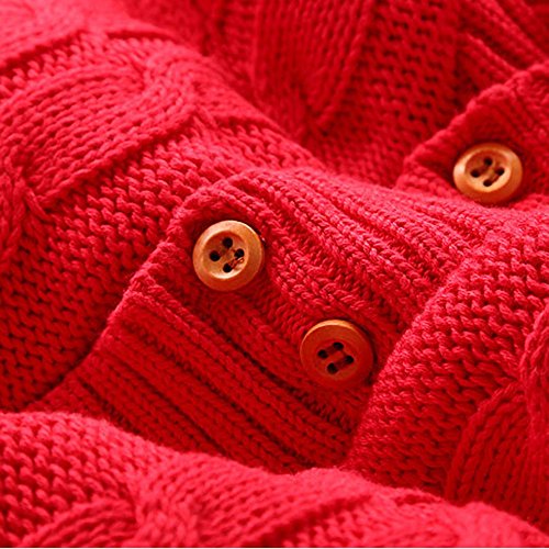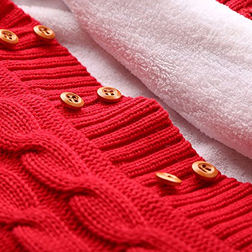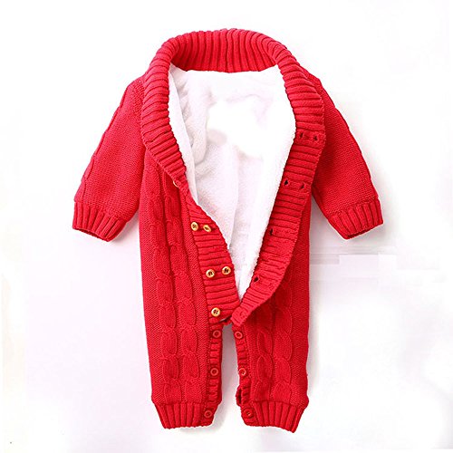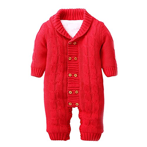 POTOJP ベビー 赤ちゃん ニット カバーオール ロンパース 長袖 無地 ベビー服 キッズ服 あたたか もこもこ 裏起毛 クライミング服 満月/出産祝い/プレゼント 春秋冬防寒着 子供服 (レッド, 80)