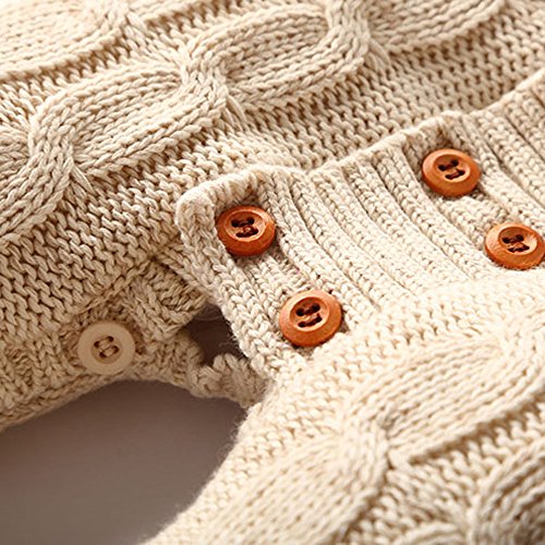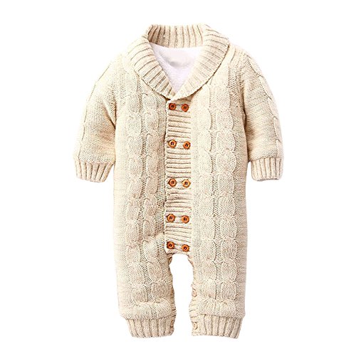 POTOJP ベビー 赤ちゃん ニット カバーオール ロンパース 長袖 無地 ベビー服 キッズ服 あたたか もこもこ 裏起毛 クライミング服 満月/出産祝い/プレゼント 春秋冬防寒着 子供服 (カーキ, 70)