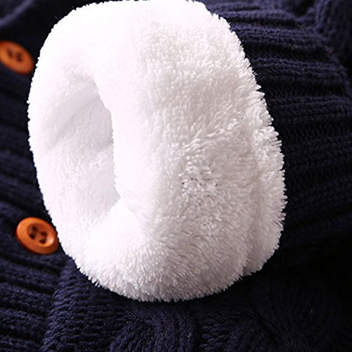 POTOJP ベビー 赤ちゃん ニット カバーオール ロンパース 長袖 無地 ベビー服 キッズ服 あたたか もこもこ 裏起毛 クライミング服 満月/出産祝い/プレゼント 春秋冬防寒着 子供服 (ダークブルー, 70)
