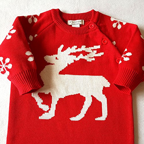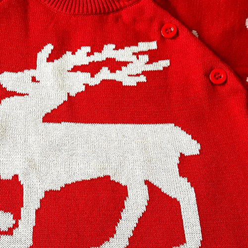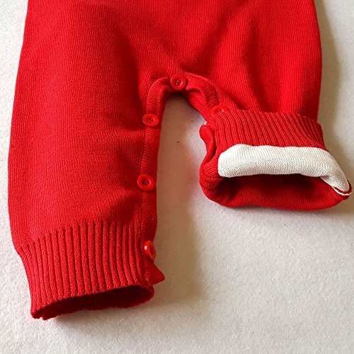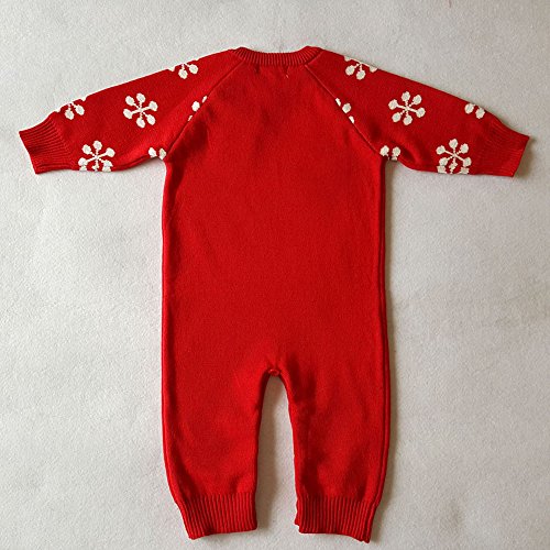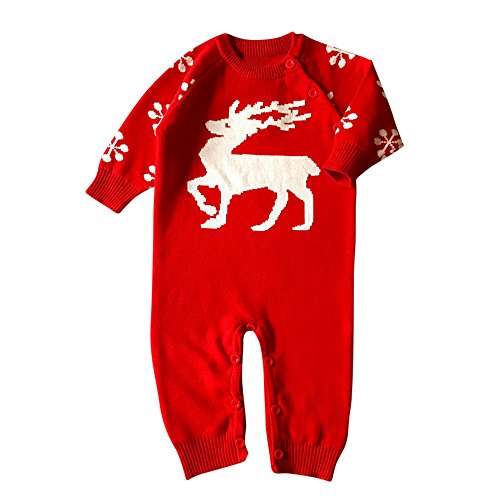クリスマス 衣装 POTOJP エルク柄 ニット製 暖かい ロンパー ベビー カバーオール 長袖 新生児服 ロンパース 春秋冬 パジャマ 家着 満月/出産祝い/普段着 男女兼用 (レッド, 70)