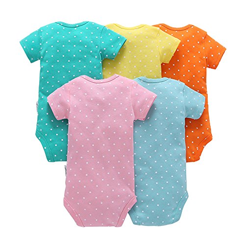 子供服 POTOJP 男の子 女の子 無地 カバーオール 新生児 半袖 ベビー服 赤ちゃん 柔らかい肌着 ジャンプスーツ ボディスーツ コットン ブレンド製 ロンパース 満月/出産祝い/普段着 5点セット (B, 100)