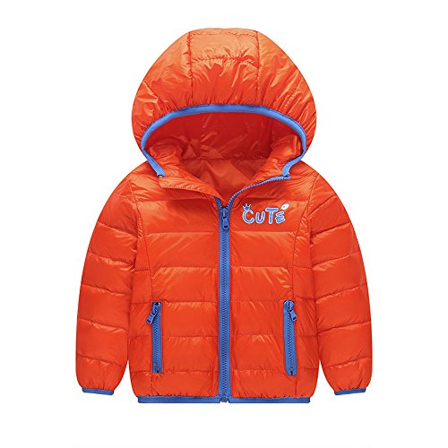POTOJP 保暖 防寒 ダウンジャケット キッズ 男女兼用 軽いダウンコート 子供服 長袖上着 フード付き アウター ジャケット 通学 普段用 綿服 (120, OR)