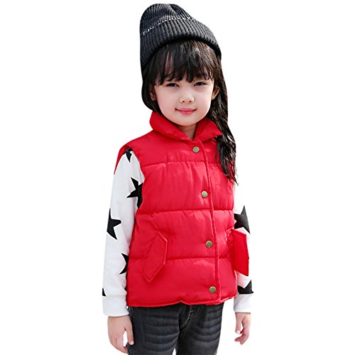 POTOJP 韓国風 ファッション 秋冬 男女兼用 無地 無袖 ダウンベスト ダウンジャケット キッズ ダウンコート 子供服 上着 アウター ジャケット 防寒綿服 通学 普段用 (100, RD)
