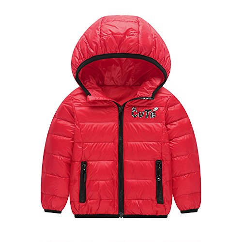POTOJP 保暖 防寒 ダウンジャケット キッズ 男女兼用 軽いダウンコート 子供服 長袖上着 フード付き アウター ジャケット 通学 普段用 綿服 (130, RD)