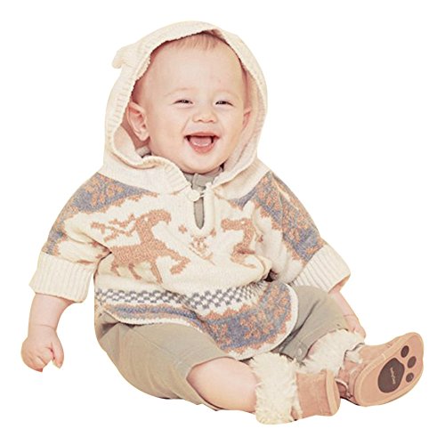 POTOJP クリスマス ヘラジカ ポンチョ マント型 ニット製 コート ケープ コート 上着 長袖 子供服 女の子 男の子 幼児 アウター キッズ服 フード付け 春秋冬 防寒 保温 プルオーバー (60, WH)