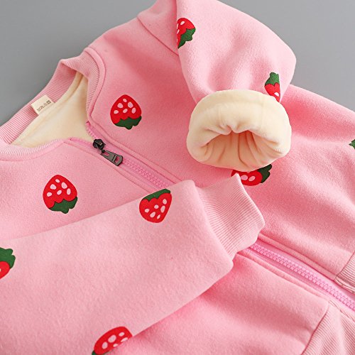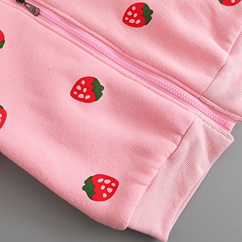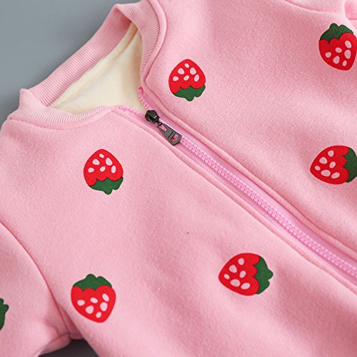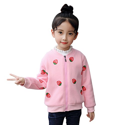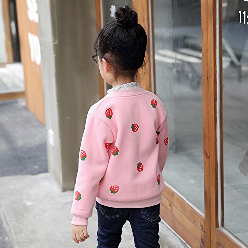 POTOJP キッズ服 いちご柄 子供 カーディガン コットンブレンド製 長袖 ジャケット 子供服 女の子 幼児 アウター 春秋冬 防寒 保温 上着 (100, ピンク)
