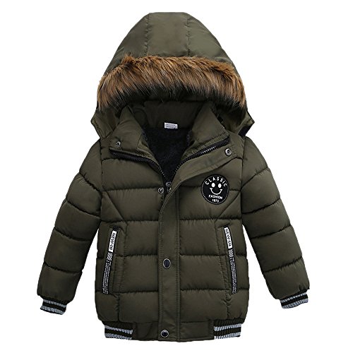 POTOJP 子ども用 中綿コート フワフワ毛襟 ダウンジャケット ジッパー ダウンコットンコート キッズ 上着 フード付け アウター 男の子 冬 防寒綿服 コットンジャケット 日常着 (120, グリーン)