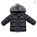 POTOJP 子ども用 中綿コート フワフワ毛襟 ダウンジャケット ジッパー ダウンコットンコート キッズ 上着 フード付け アウター 男の子 冬 防寒綿服 コットンジャケット 日常着 (90, ブラック)