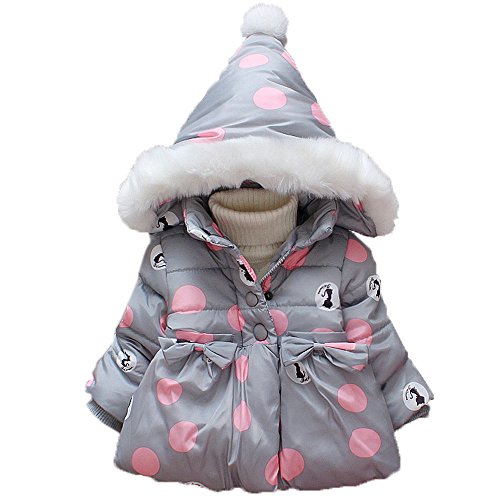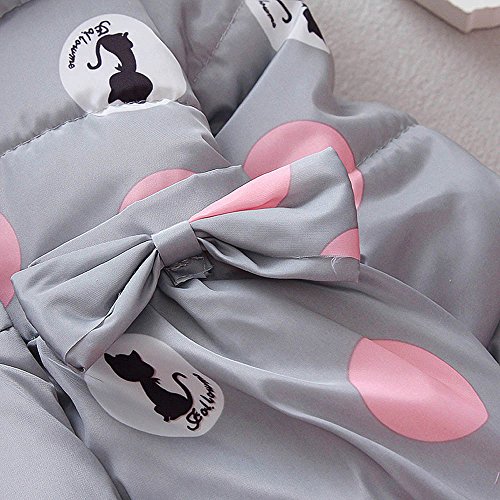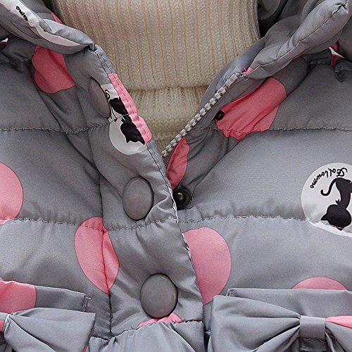 POTOJP 子ども用 可愛い ドット コットンジャケット ボウタイ ダウンコットンコート 中綿コート キッズ 上着 毛襟 キャップ付き アウター 女の子 冬 防寒綿服 コットンジャケット (100, グレー)