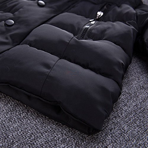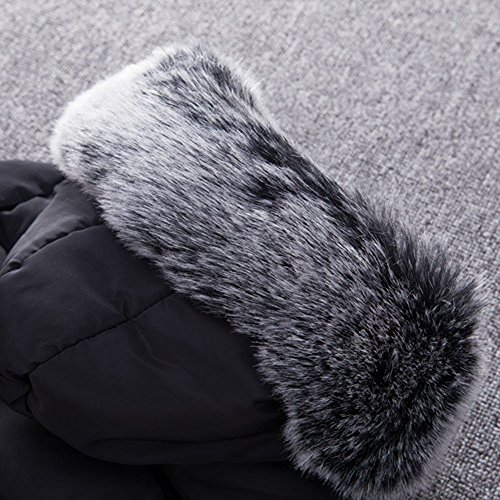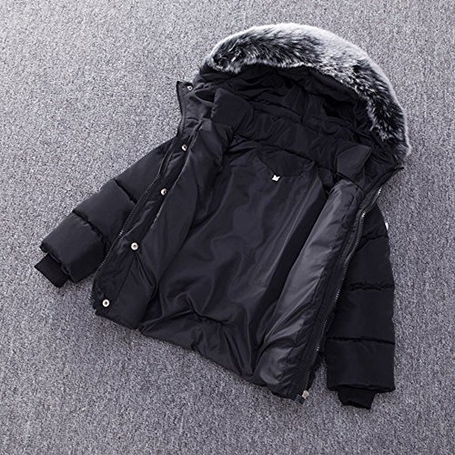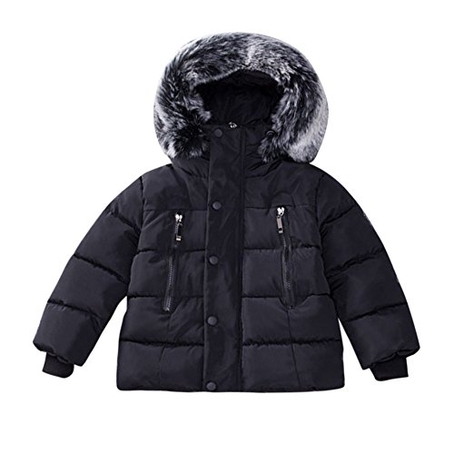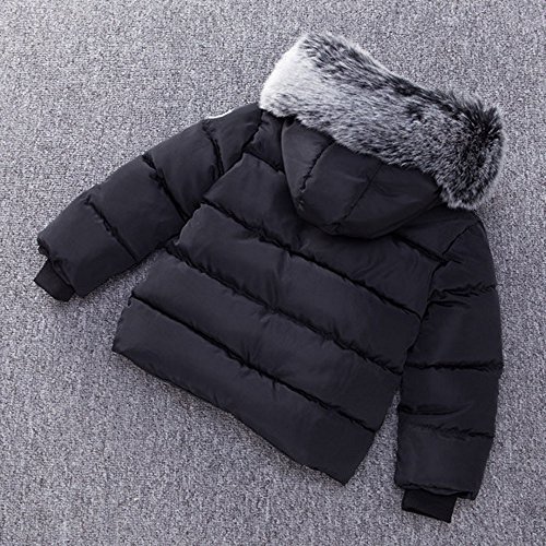 POTOJP 可愛い 毛皮襟 子ども用 ダウンジャケット 厚め ダウンコットンコート 中綿コート キッズ 上着 フード付け アウター 女の子 男の子 冬 防寒綿服 コットンジャケット (100, ブラック)