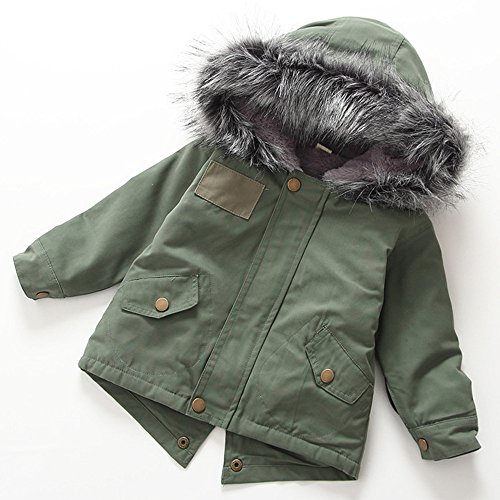 POTOJP 韓国風秋冬 毛襟 可愛い 子ども用 パンコット ジャケット ダウンコットンコート 中綿コート キッズ 上着 キャップ付き 女の子 コットンジャケット 防寒着 日常着 綿服 (100, アーミーグリーン)