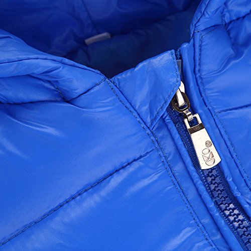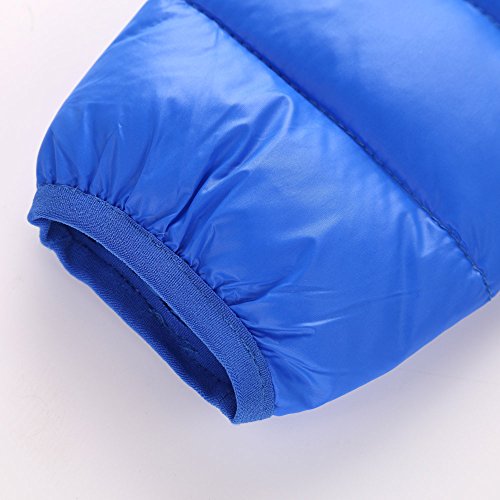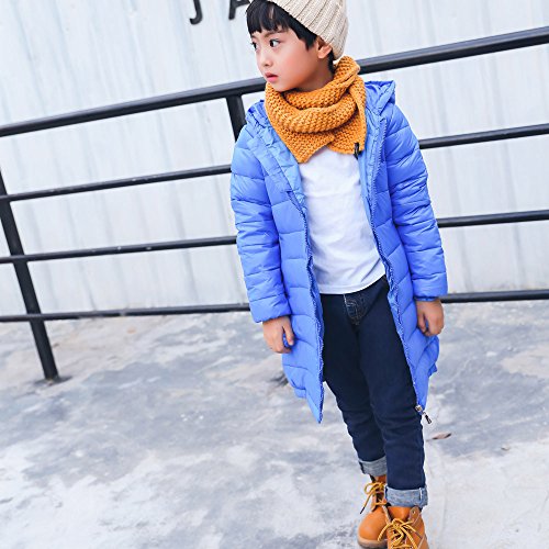POTOJP 秋冬 韓国風 無地 ダウンジャケット キッズ 中綿コート ロング丈 軽量 あったか 防寒 ガールズ ポンポンキャップ付き 元気少女 防寒綿服 コットンジャケット 日常着 上着 (120, ブルー)