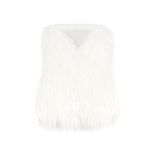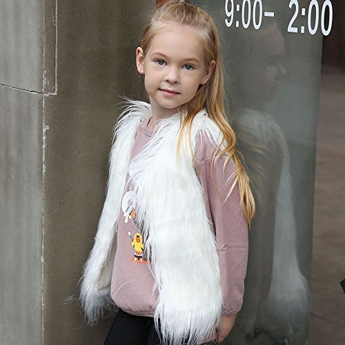 POTOJP 子供用 欧米風 暖かい ファーコート 女児 フェイク ファーベスト 暖かい ジャケット 女の子 キッズ衣装 パーティー 日常生活 カジュアル オシャレ (130, ホワイト)