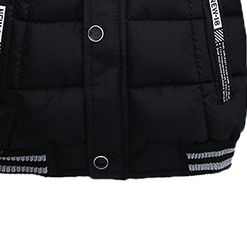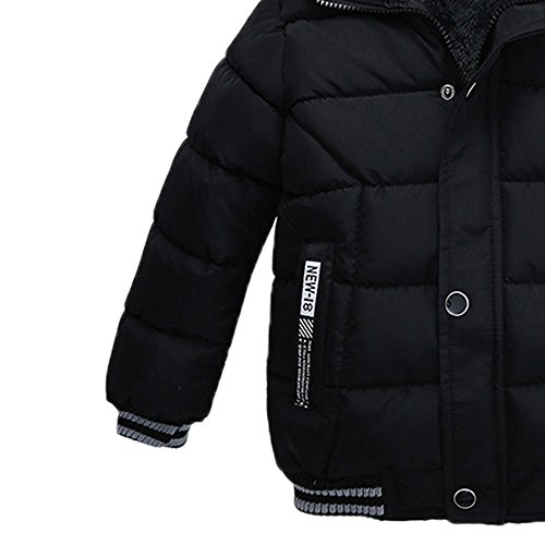POTOJP 子ども用 中綿コート フワフワ毛襟 ダウンジャケット ジッパー ダウンコットンコート キッズ 上着 フード付け アウター 男の子 冬 防寒綿服 コットンジャケット 日常着 (100, ブラック)
