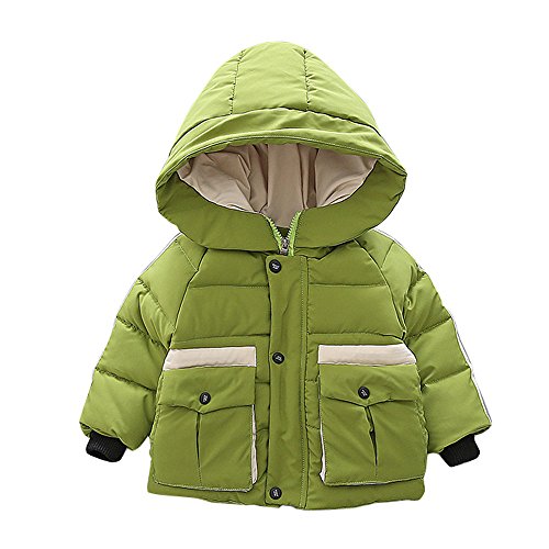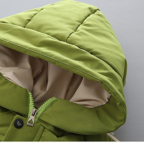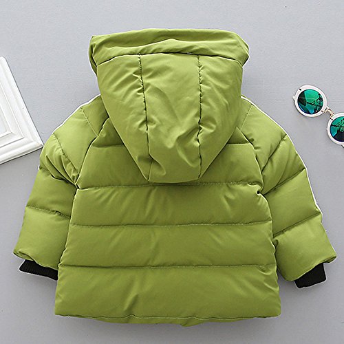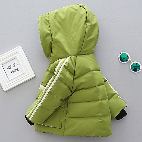 POTOJP 韓国風秋冬 ストライプ柄 子ども用 コット ショートジャケット ダウンコットンコート 中綿コート キッズ 上着 キャップ付き 女の子 男の子 コットンジャケット 防寒着 日常着 綿服 (100, グリーン)