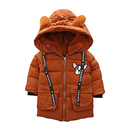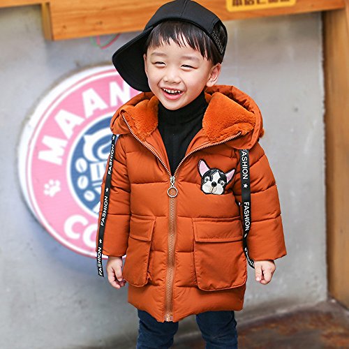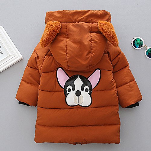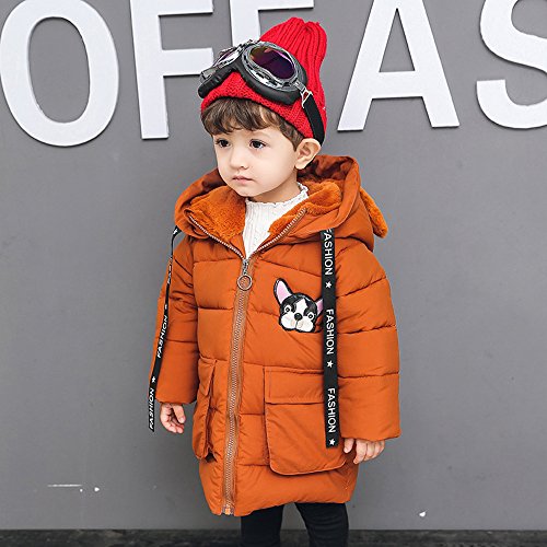 POTOJP 韓国風秋冬 毛襟 犬柄 子ども用 パンコット ロングジャケット ダウンコットンコート 中綿コート キッズ 上着 キャップ付き 女の子 男の子 コットンジャケット 防寒着 日常着 綿服 (90, オレンジ)