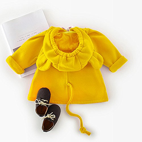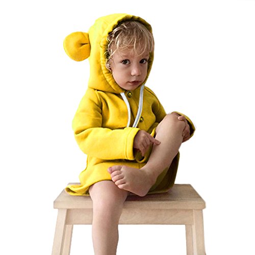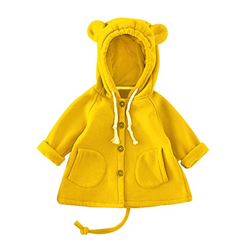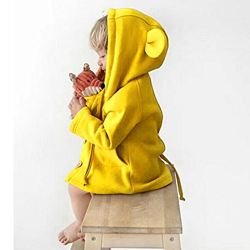 POTOJP シンプル風 秋冬 子供用 長款スウェット 長袖コート キッズ服 ジャケット 子供 可愛いカーディガン クマ耳フード付け コットンブレンド製上着 長袖 幼児 アウター 春秋冬 防寒 棉服 (100, イエロー)