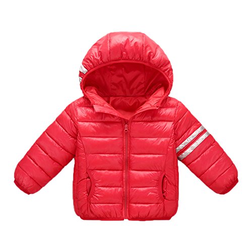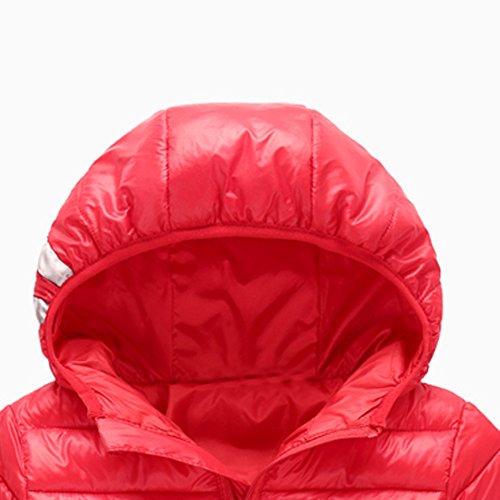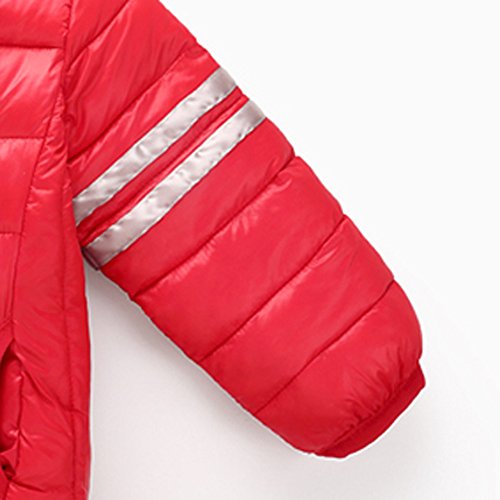 POTOJP 子供用 無地 スラッシュコート ダウンジャケット ジッパー ダウンコットンコート キッズ 上着 フード付け アウター 男の子 女の子 冬 コットンジャケット 日常着 防寒綿服 (130, レッド)
