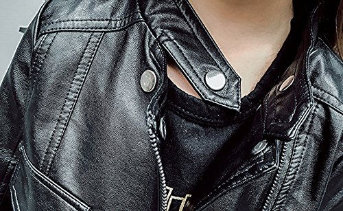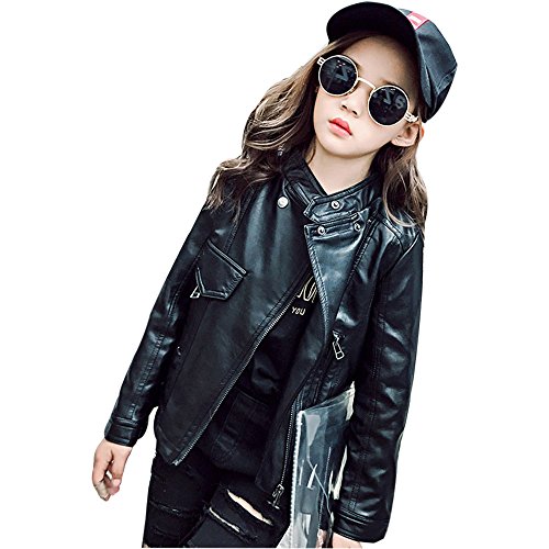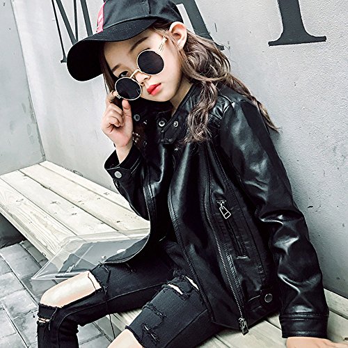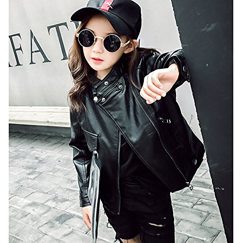 POTOJP 韓国風 少女 PU革 ジャケット レザージャケット キッズ ライダースジャケット 子供 コート キッズ 子供 カジュアル コート 女の子 子供服 ブルゾン かっこいい (130, ブラック)