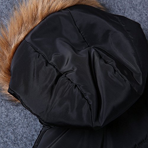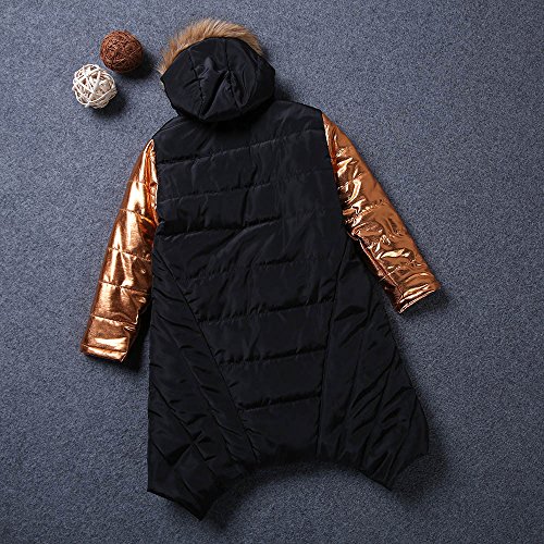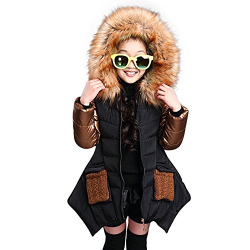 POTOJP 韓国風秋冬 毛襟 オシャレ 少女 ロングコット 女児 ジャケット ダウンコットンコート 中綿コート ガール キッズ 上着 キャップ付き 女の子 コットンジャケット 防寒着 日常着 綿服 (130, ブラック)