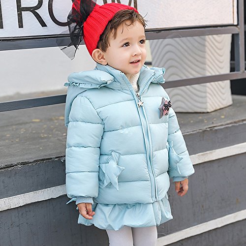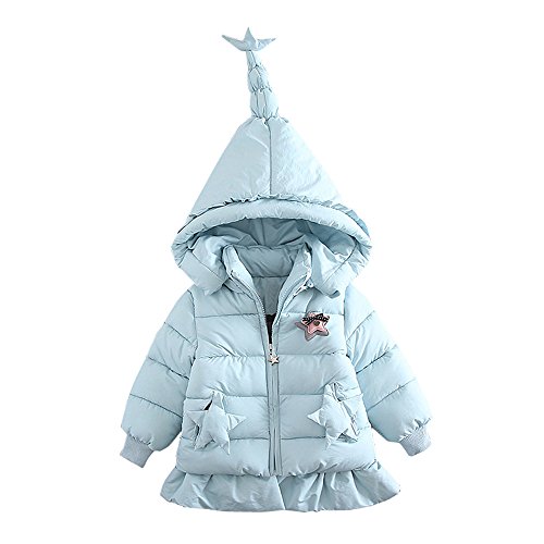 POTOJP 秋冬 暖かい キッズ服 無地 星柄 ジャケット シャープなフード付け 子供 カーディガン コットンコート 上着 長袖 子供服 女の子 幼児 アウター 防寒 保温 棉服 (100, ライトブルー)