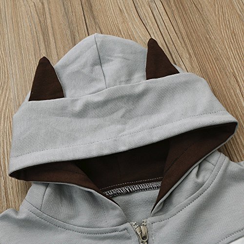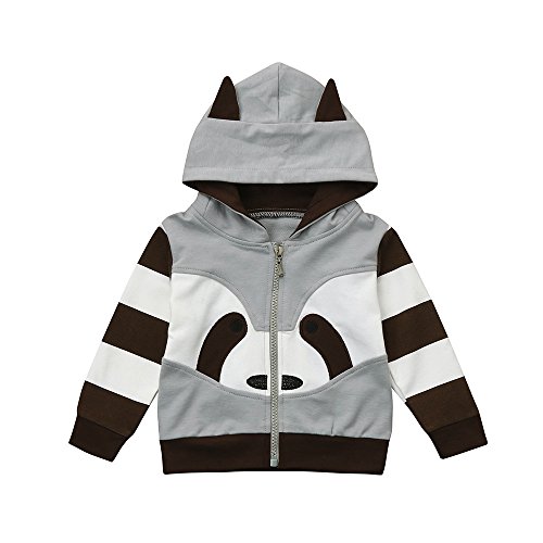 POTOJP 子ども用 薄いコート 可愛い動物 ジャケット ジッパー コットンコート キッズ 上着 フード付け アウター 男の子 春秋冬 日常着 コットンカーディガン (グレー, 90)