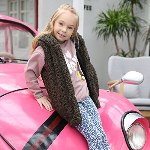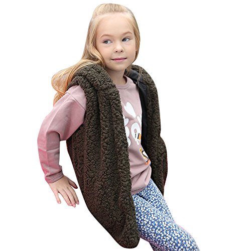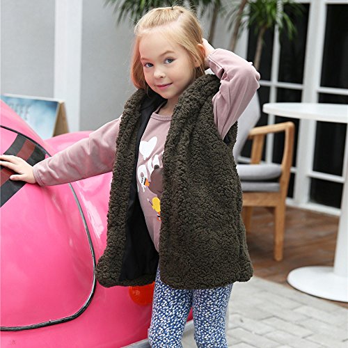 POTOJP 欧米風 子供用ベスト ノースリーブベス フード付き フェイクファー 女の子 男の子 ユニセックス 子供服 キッズ コート ヨーロッパスタイル ふわふわ 温かい 春/秋/冬 (アーミーグリーン, 120)