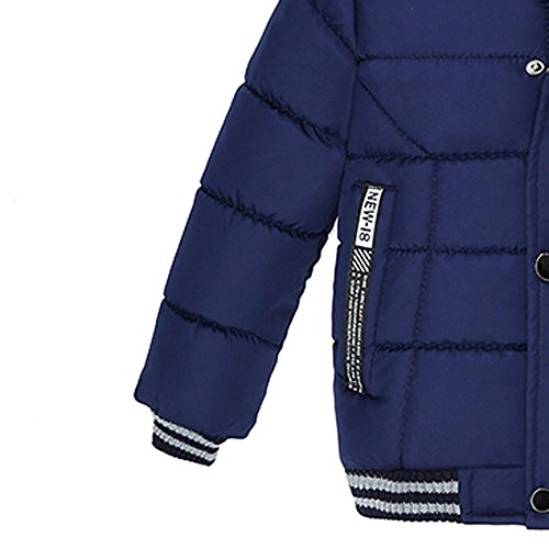 POTOJP 子ども用 中綿コート フワフワ毛襟 ダウンジャケット ジッパー ダウンコットンコート キッズ 上着 フード付け アウター 男の子 冬 防寒綿服 コットンジャケット 日常着 (90, ネイビー)