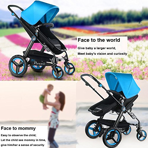 ファッション 幼児ベビーカー, 乳母車, 子供のベビーカー, 高い視点, 大きな車輪, 折り畳み式の, (Blue)
