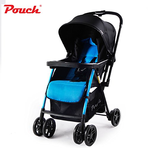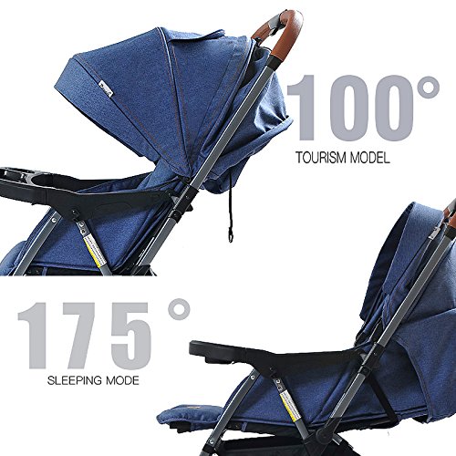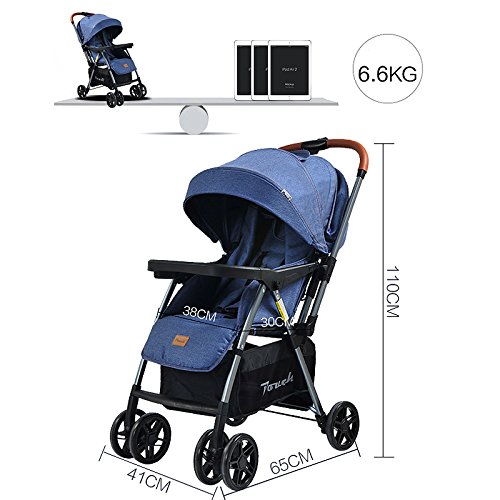 軽量傘の車 幼児ベビーカー 乳母車 多機能の 四輪サスペンション ファッション 双方向の (BLACK BLUE)