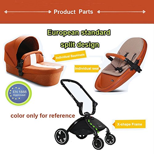 1) European Standard Split Design, X-shaped antioxidative aluminum alloy frame, Make the stroller looks luxury and elegant.