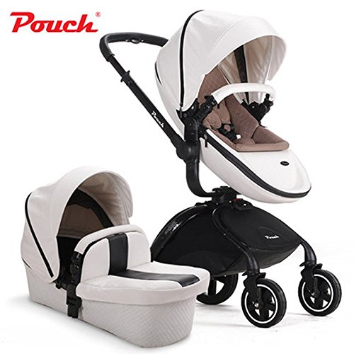 2イン1ベビーカー 赤ちゃんベビーカー ベビーカー 贅沢PU 高い視点 ショック 折り畳み式の シットうそ (White)