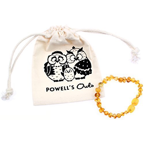 Baltic Amber Teething Bracelet or Anklet for Babies, Toddlers, and Kids - Lab-Tested - Raw Unpolished Honey - 5.5 Inches by Powell's Owls