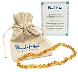 SAFE & ORGANIC TEETHING RELIEF - A safe alternative to toxic, chemical teething tablets. Reduces drooling and fussiness. Amber's natural Succinic Acid boosts the immune system and reduces gum swelling.;HIGHEST QUALITY AMBER - Your baby deserves the best. Handcrafted from all natural, authentic Baltic Amber. Only bracelet verified authentic by the Gemological Institute of America, the world's leading authority in gemology.;WORKS FASTER & LASTS LONGER - Authentic Baltic Amber contains more Succinic acid than imitation opal. Teething pain relief for your baby in 15-30 minutes. Bracelet does not lose effectiveness over time.;DURABLE & SAFE DESIGN - Carefully designed for durability and safety. The screw clasp prevents your baby from taking the bracelet off. Every bead is secured by two knots. This prevents a choking hazard.;UNMATCHED GUARANTEE - 100% satisfaction guaranteed for LIFE. If after 7 days of wearing our amber bracelet your baby is not drooling or fussing noticeably less, please send the bracelet back. Not only will we completely refund your money, but we will then buy you any other baby amber bracelet on Amazon.