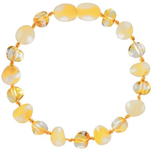 SAFE & ORGANIC TEETHING RELIEF - A safe alternative to toxic, chemical teething tablets. Reduces drooling and fussiness. Amber's natural Succinic Acid boosts the immune system and reduces gum swelling.;HIGHEST QUALITY AMBER - Your baby deserves the best. Handcrafted from all natural, authentic Baltic Amber. Only bracelet verified authentic by the Gemological Institute of America, the world's leading authority in gemology.;WORKS FASTER & LASTS LONGER - Authentic Baltic Amber contains more Succinic acid than imitation opal. Teething pain relief for your baby in 15-30 minutes. Bracelet does not lose effectiveness over time.;DURABLE & SAFE DESIGN - Carefully designed for durability and safety. The screw clasp prevents your baby from taking the bracelet off. Every bead is secured by two knots. This prevents a choking hazard.;UNMATCHED GUARANTEE - 100% satisfaction guaranteed for LIFE. If after 7 days of wearing our amber bracelet your baby is not drooling or fussing noticeably less, please send the bracelet back. Not only will we completely refund your money, but we will then buy you any other baby amber bracelet on Amazon.