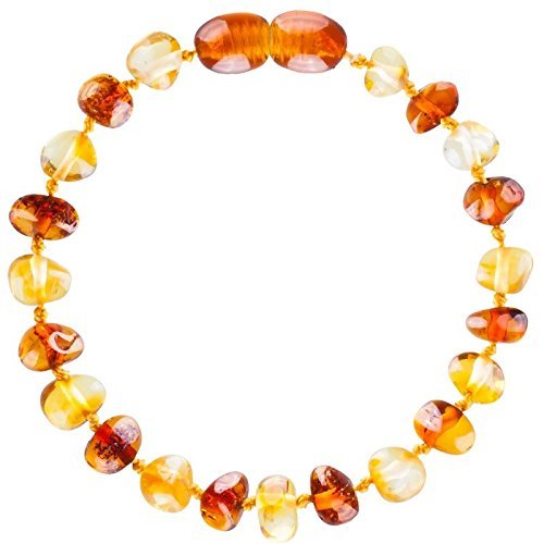 Baltic Amber Teething Bracelet or Anklet for Babies, Toddlers, and Kids - Lab-Tested - Baroque Cognac/Honey Mix - 5.5 Inches [並行輸入品]