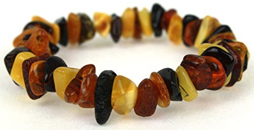 Baltic Amber Teething Bracelet or Anklet for Babies, Toddlers, and Kids - Lab-Tested - Multicolored Chips - Stretchy Cord - 5.5 Inches [並行輸入品]