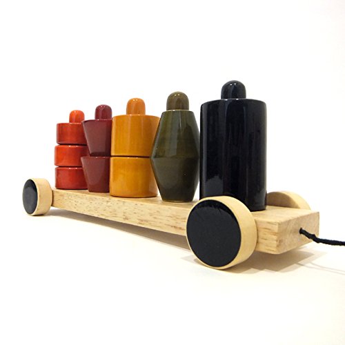ダークトンに光沢を施した独特なカラーのブロックが特徴的な木のおもちゃです。