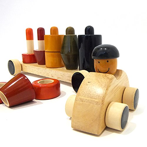 遊びのバリエーションが広がり、働く車のトレーラーワゴンなので特に男の子に大人気の木のおもちゃです。