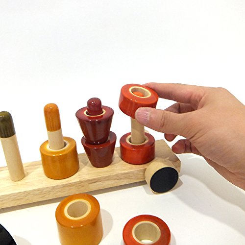 - 棒に通すという基本的な動作は子供にはできません。棒通しを少しづつ覚えたり、ブロックをバラバラにして積み木遊びもできます。