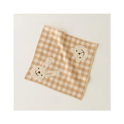 片面はガーゼ、もう片面はパイル地のガーゼハンカチタオルです。うさぎとクマのキャラクターが可愛らしくポイントです。